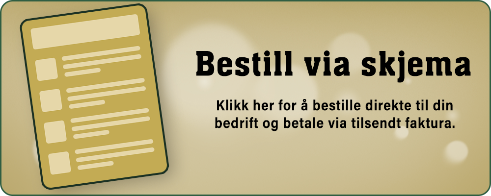 Om du ønsker å bestille for bedrift så anbefaler vi å benytte skjema (andre valget), eller du kan ta direkte kontakt med oss.