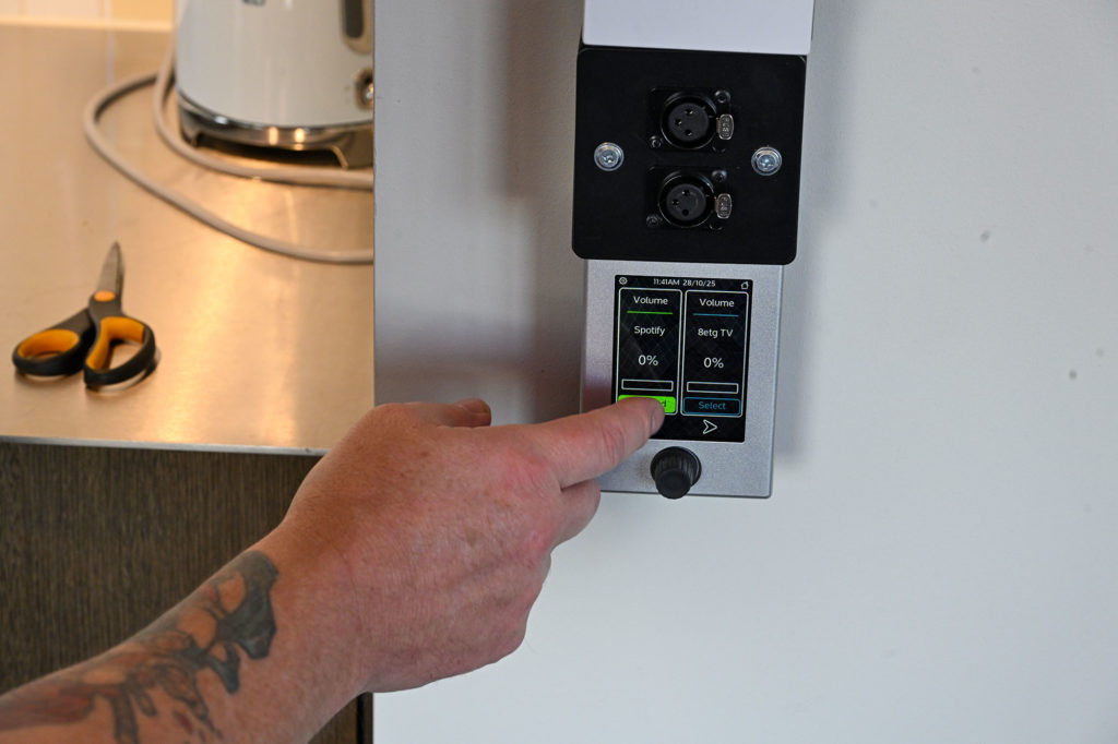 • NST Audio VMX88 lydmatrise, styrt av to VR2 touch-paneler (med app-styring som alternativ).
